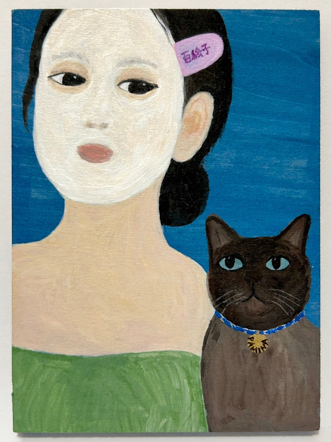 土台となる木のぬくもりを残した雰囲気です。旅先で考えたことや、日常の瞬間を描きます。(アクリル、ジェッソ、ベニヤ/acrylic paint, pigment on board)